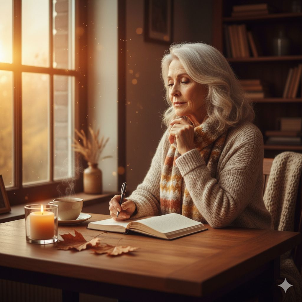 👩 Grace E., 73 – Flagstaff, AZ, Grace journals monthly reflections at the end of each month. “October taught me that slowing down doesn’t mean falling behind. It means catching up—with myself.”