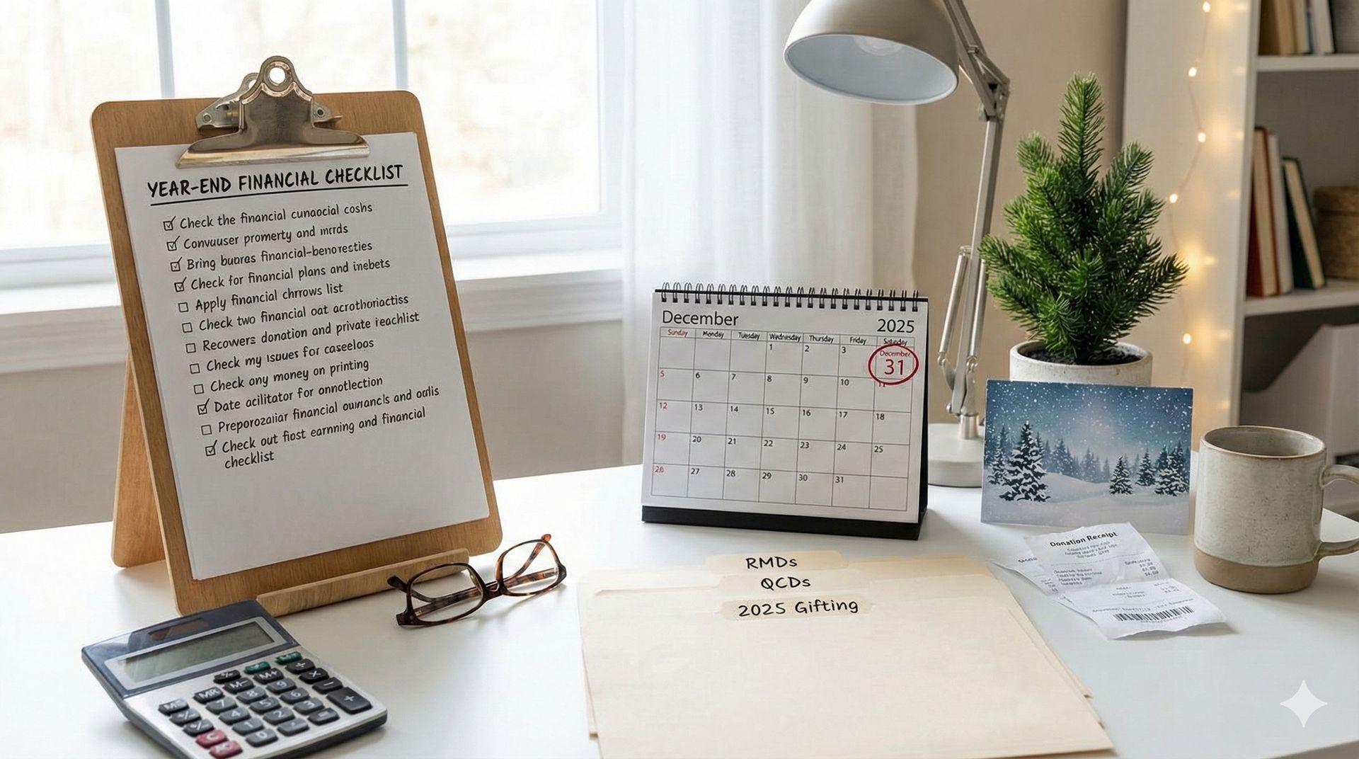 Year-end financial tasks matter more in retirement. If you're 73+, RMDs must be completed by Dec 31 to avoid penalties.